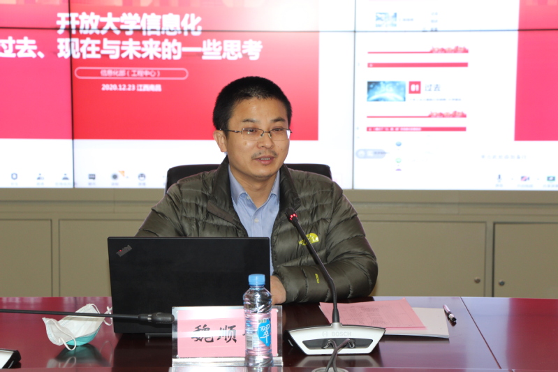 12月23日,国家开放大学“一路一网一平台”建设专题研讨会在永利官网顺利召开,国家开放大学和安徽开放大学、成都开放大学、河北开放大学、湖南开放大学、宁波开放大学、天津开放大学、浙江开放大学、ylzzcom永利总站线路检测8所省级开放大学信息化建设和管理部门的主要领导和专家参加了此次研讨会,国家开放大学信息化部(工程中心)副处长魏顺平主持会议并作报告,永利官网党委委员、副校长邱东升出席会议并发表致辞。