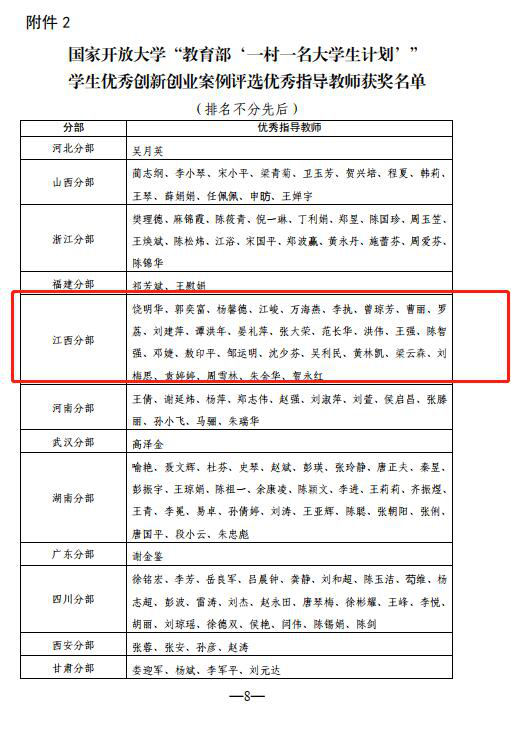 据悉,本次活动共有17个分部的112个创新创业案例入围参评。经专家评审和公示,共评选出一等奖6个、二等奖12个、三等奖20个、优秀奖30个,优秀指导教师137名,优秀组织奖7个。江西上报11篇,获奖10篇。(文字/图片:杨馨德 责任编辑:罗楚颖)