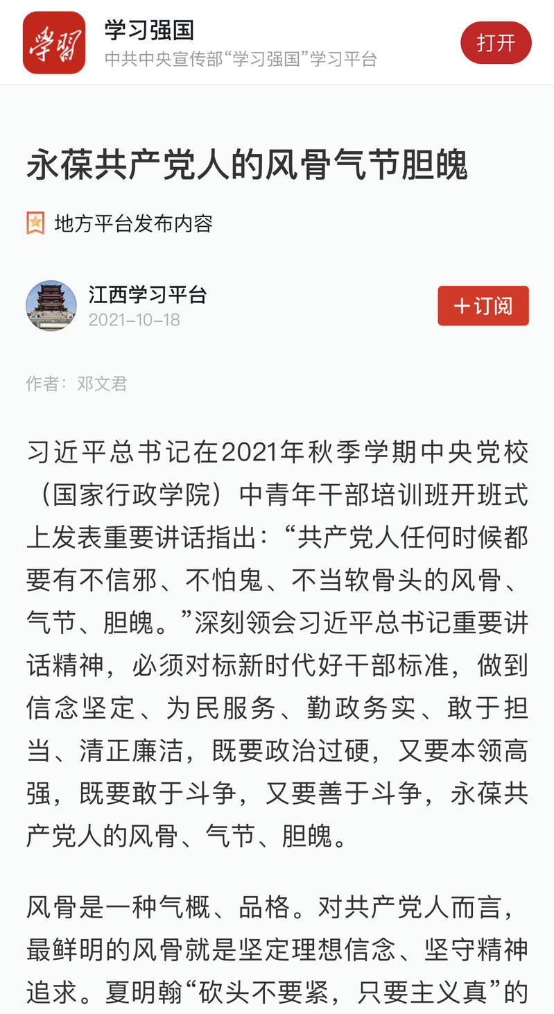 原文地址:https://article.xuexi.cn/articles/index.html?art_id=6996874099896869438&t=1634525886912&showmenu=false&cdn=https%3A%2F%2Fregion-jiangxi-resource&study_style_id=feeds_opaque&source=share&share_to=wx_single&item_id=6996874099896869438&ref_read_id=165d1dab-6ebb-4f48-97c0-13beccee28bf_1634526512147