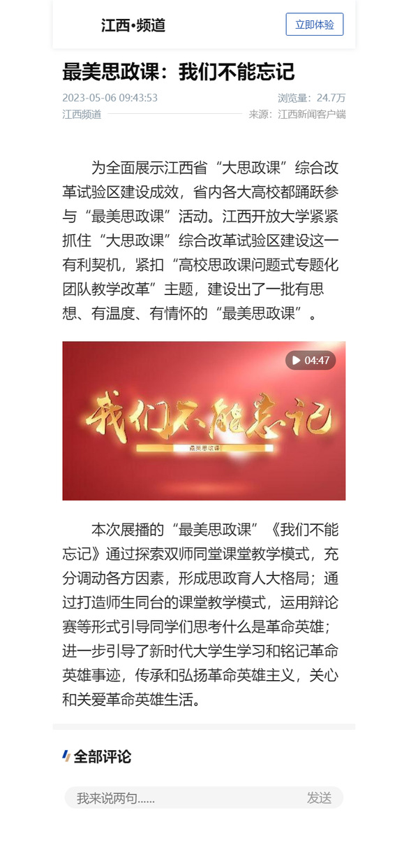 为全面展示江西省“大思政课”综合改革试验区建设成效,省内各大高校都踊跃参与“最美思政课”活动。ylzzcom永利总站线路检测紧紧抓住“大思政课”综合改革试验区建设这一有利契机,紧扣“高校思政课问题式专题化团队教学改革”主题,建设出了一批有思想、有温度、有情怀的“最美思政课”。