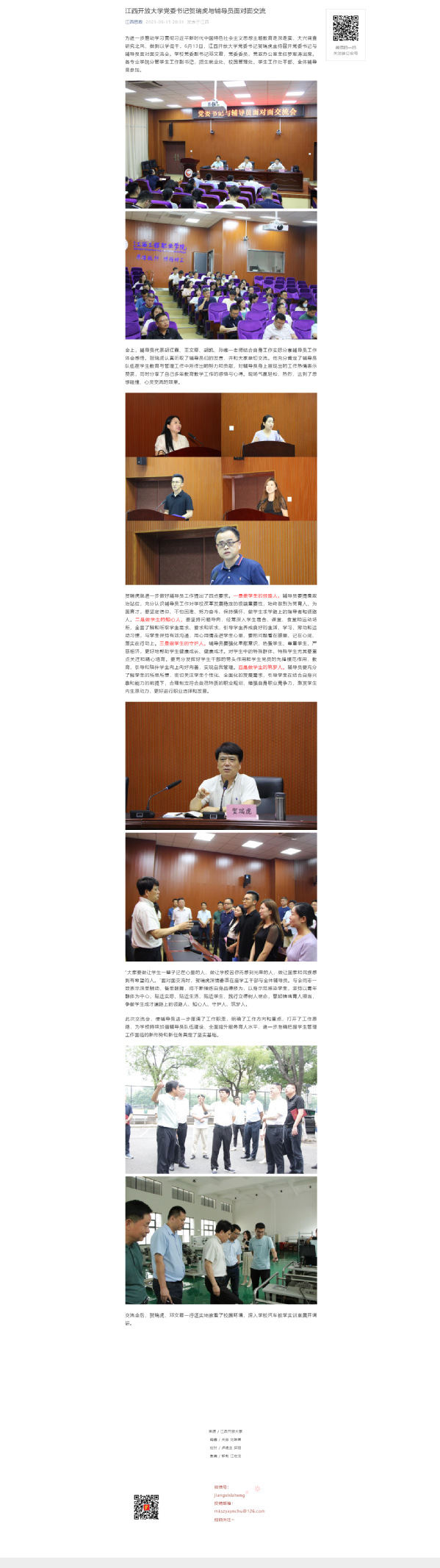 为进一步推动学习贯彻习近平新时代中国特色社会主义思想主题教育走深走实,大兴调查研究之风,做到以学促干,6月13日,ylzzcom永利总站线路检测党委书记贺瑞虎主持召开党委书记与辅导员面对面交流会。学校党委副书记邓文君,党委委员、党政办公室主任罗军涛出席。各专业学院分管学生工作副书记,招生就业处、校园管理处、学生工作处干部、全体辅导员参加。