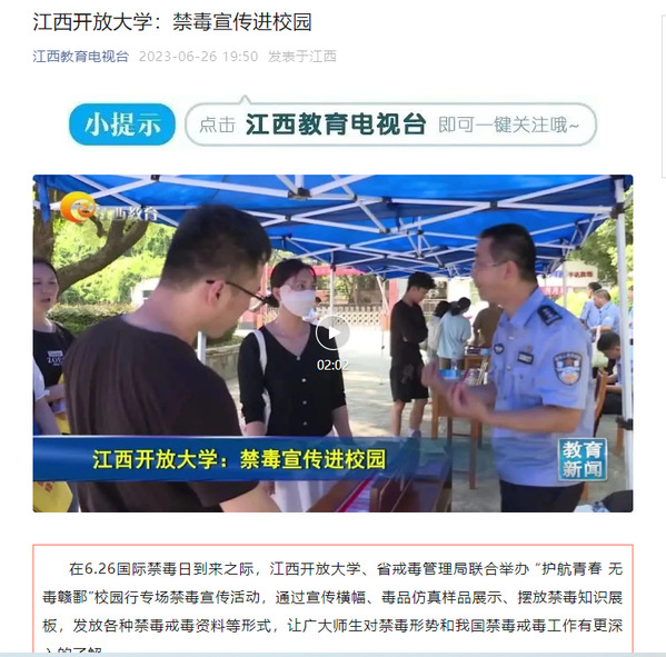 在6.26国际禁毒日到来之际,ylzzcom永利总站线路检测、省戒毒管理局联合举办 “护航青春 无毒赣鄱”校园行专场禁毒宣传活动,通过宣传横幅、毒品仿真样品展示、摆放禁毒知识展板,发放各种禁毒戒毒资料等形式,让广大师生对禁毒形势和我国禁毒戒毒工作有更深入的了解。