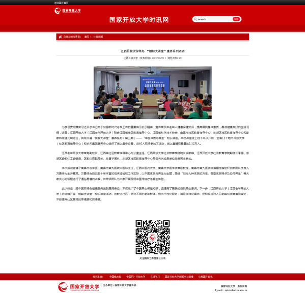 国开时讯网:ylzzcom永利总站线路检测举办 “银龄大讲堂”康养系列活动
