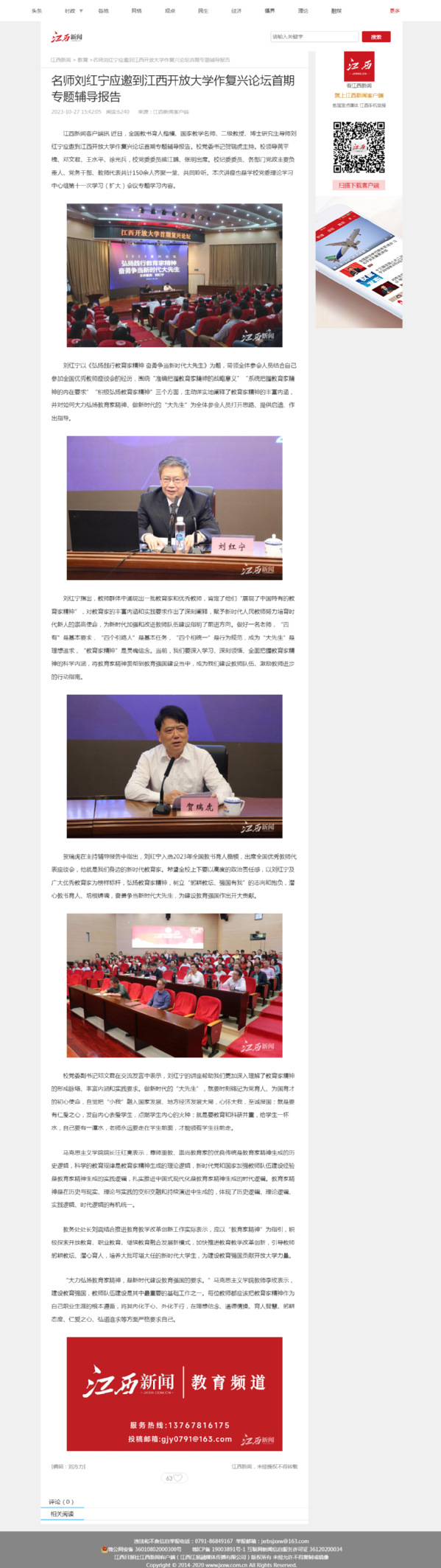 江西新闻:名师刘红宁应邀到ylzzcom永利总站线路检测作复兴论坛首期专题辅导报告