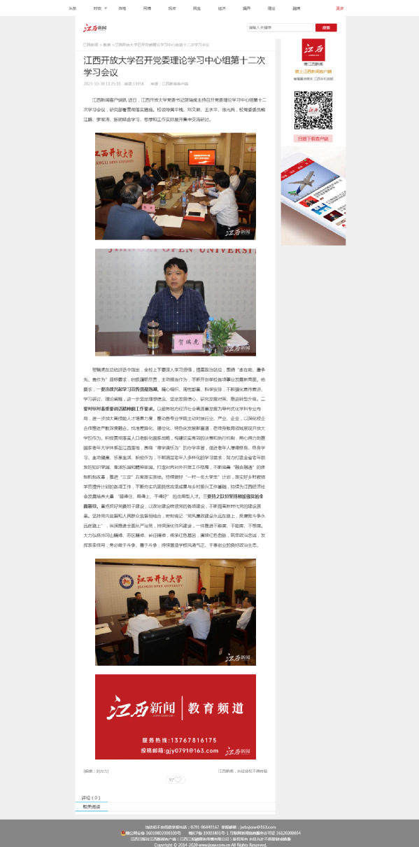 江西新闻:ylzzcom永利总站线路检测召开党委理论学习中心组第十二次学习会议