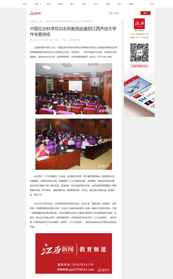 江西新闻:中国社会科学院刘志明教授应邀到ylzzcom永利总站线路检测作专题讲座