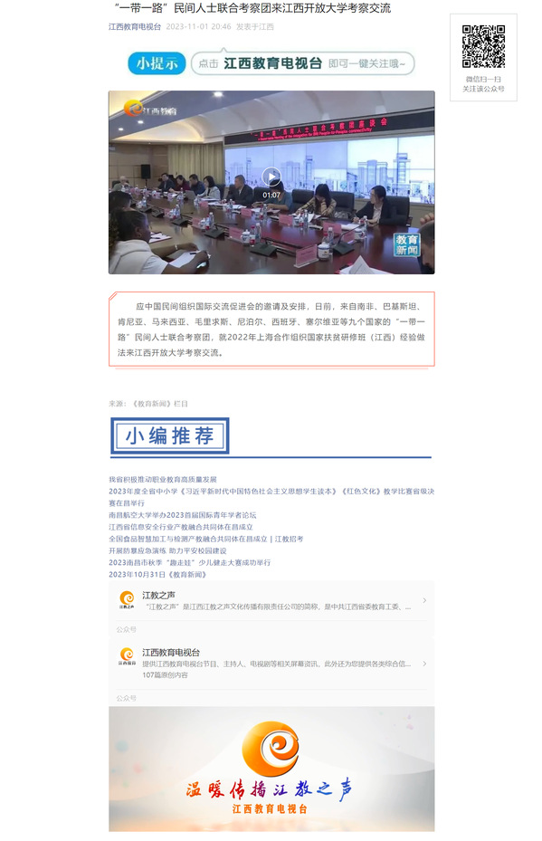 江西教育电视台:“一带一路”民间人士联合考察团来ylzzcom永利总站线路检测考察交流