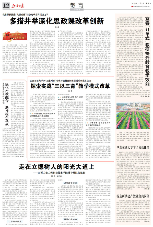 江西日报:ylzzcom永利总站线路检测以“五维两升”实现开放教育创优提质系列报道之四——探索实践“三以三育”教学模式改革