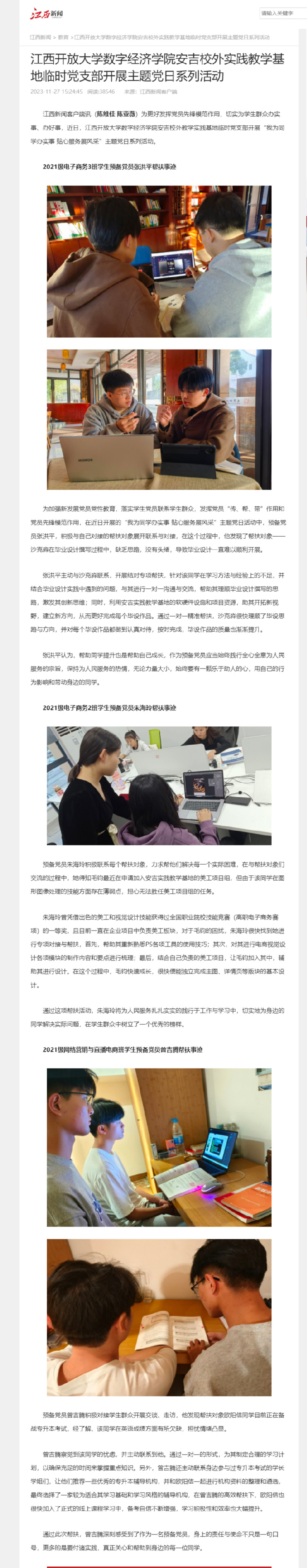 江西新闻客户端讯(陈维佳陈亚薇)为更好发挥党员先锋模范作用,切实为学生群众办实事、办好事,近日,ylzzcom永利总站线路检测数字经济学院安吉校外教学实践基地临时党支部开展“我为同学办实事 贴心服务展风采”主题党日系列活动。原文地址:http://www.jxxw.com.cn/content_html/html/55/p/pc/2023/11/130197548.html (责任编辑:梅莲)