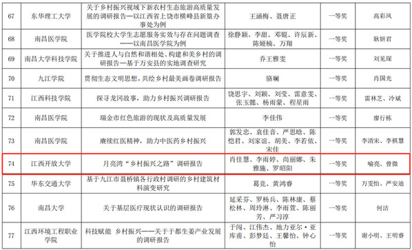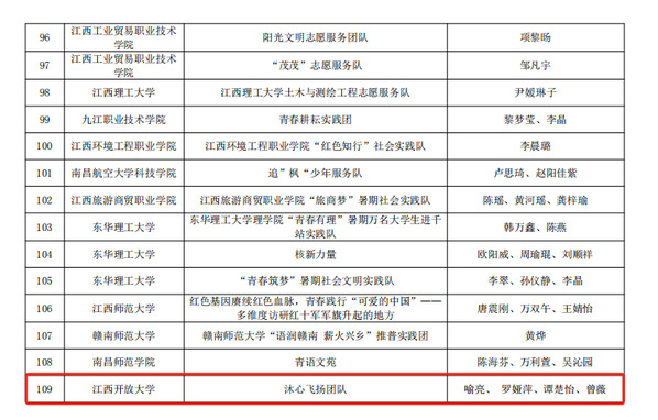 近日,江西省教育厅公布“强国有我、青春有为”暑期社会实践活动暨2023年“万名大学生进千站”文明实践志愿服务行动评审结果。其中,由永利官网学工处选送的《月亮湾“乡村振兴之路”调研报告》获得优秀调研报告一等奖,ylzzcom永利总站线路检测沐心飞扬团队荣获优秀实践成果、优秀团队和优秀指导教师等多个奖项。此外,闵文祥、沈文龙、袁雪芳三位同学荣获优秀个人。