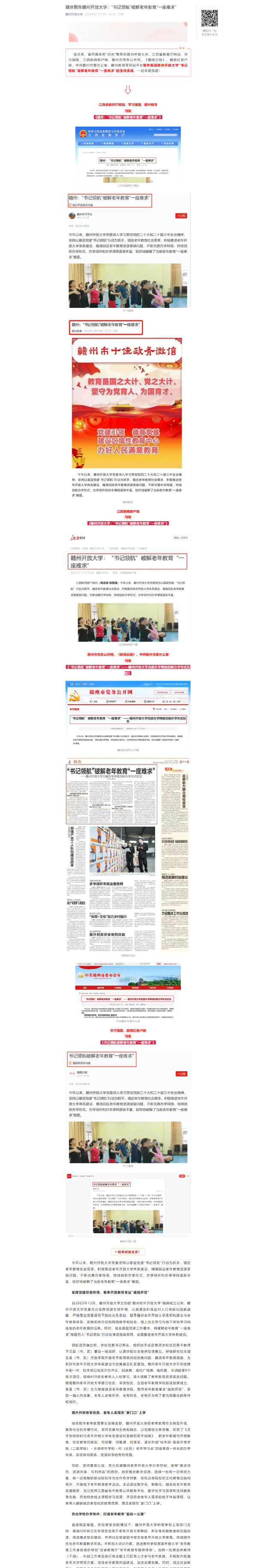 连日来,省市媒体把“目光”聚焦在赣州开放大学,江西省教育厅网站、学习强国、江西新闻客户端、赣州市党务公开网、《赣南日报》、赣南红客户端、中共赣州市委办公室、赣州教育等网站平台聚焦报道赣州开放大学“书记领航”破解老年教育“一座难求”的生动实践,一起来看报道!